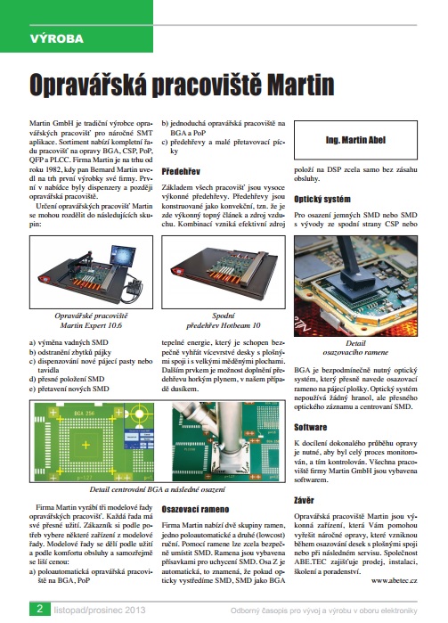Na této stránce si můžete přečíst články o společnosti, produktech a řešení dodávaných společností ABE.TEC. Pravidelně publikujeme v časopisu DPS plošné spoje od A do Z, RC Revue, EEM, Strojárstvo / Strojírenství, Technika a Automobil Industry.
